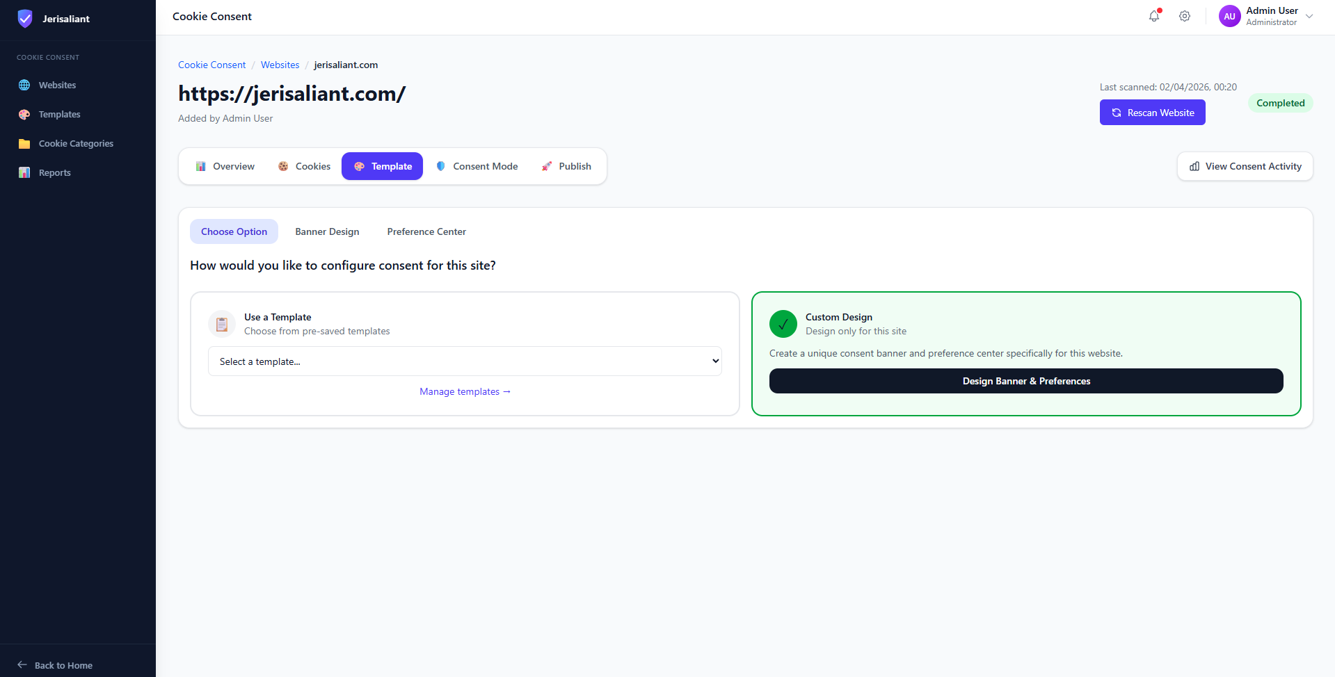 Our template library includes pre-built cookie consent banners designed for specific regulations and regions. Each template is built with compliance requirements in mind, saving you time and ensuring legal correctness.