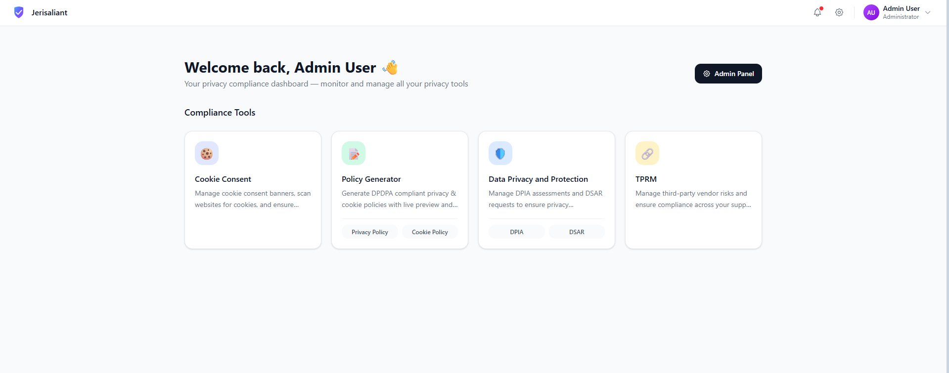 From your Jerisaliant dashboard, click on the Cookie Consent card to access the module. Here you can manage all your websites and their consent configurations.