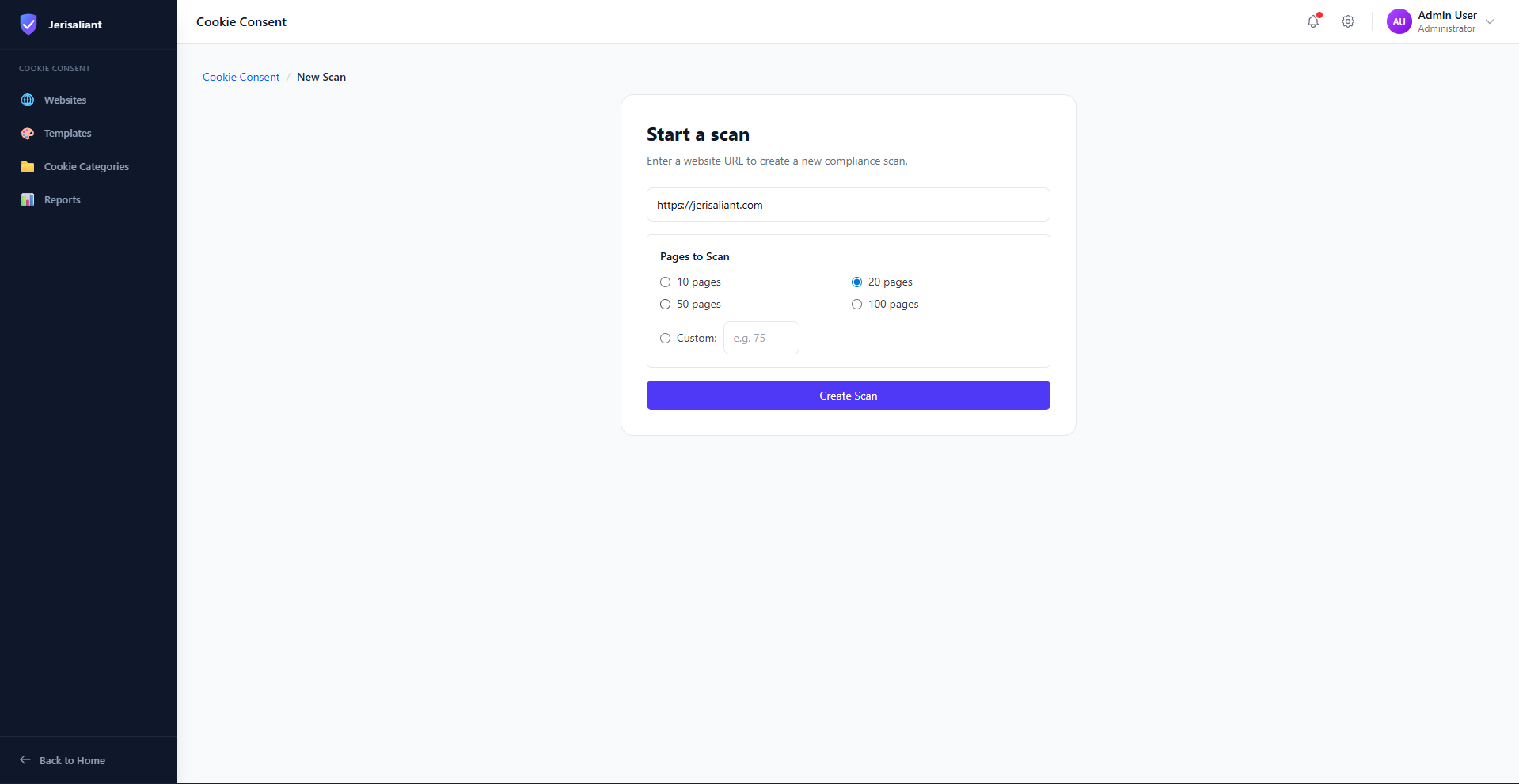 Once your scan completes, you'll see the scan results including detected cookies, compliance grade, and recommended actions. Continue to the next section to learn about cookie scanning in detail.