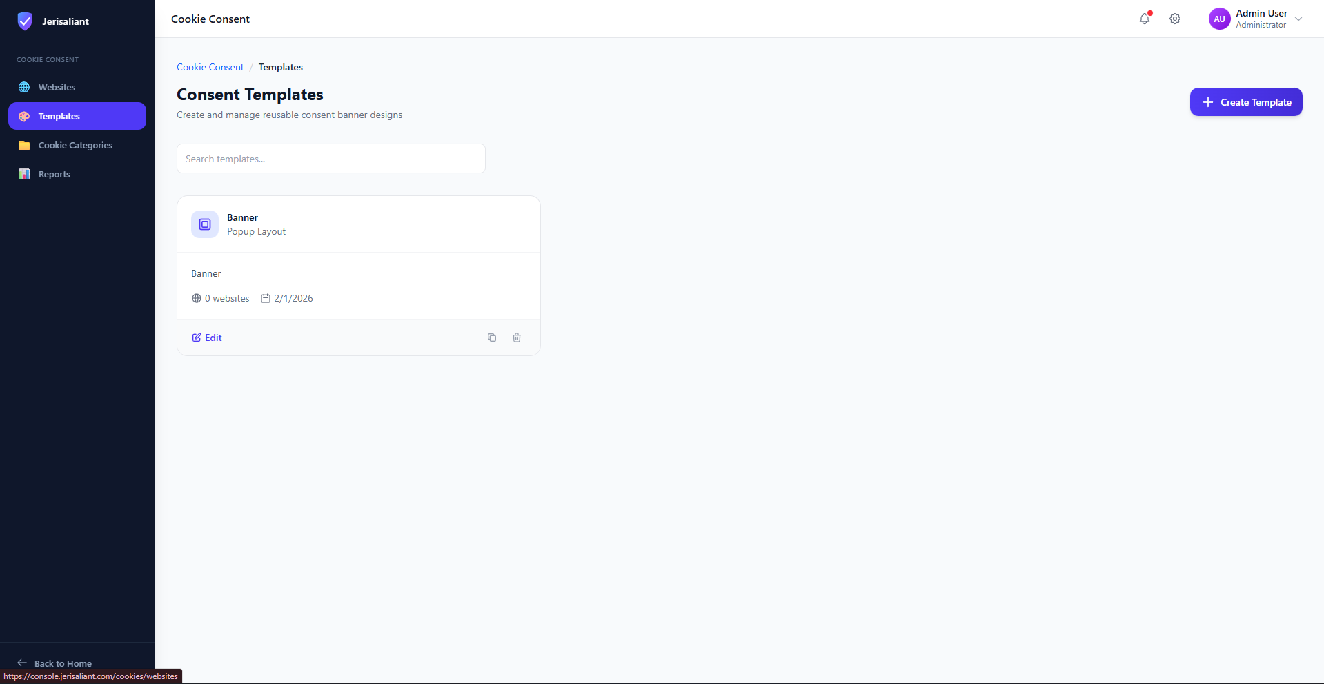 Our template library includes pre-built cookie consent banners designed for specific regulations and regions. Each template is built with compliance requirements in mind, saving you time and ensuring legal correctness.