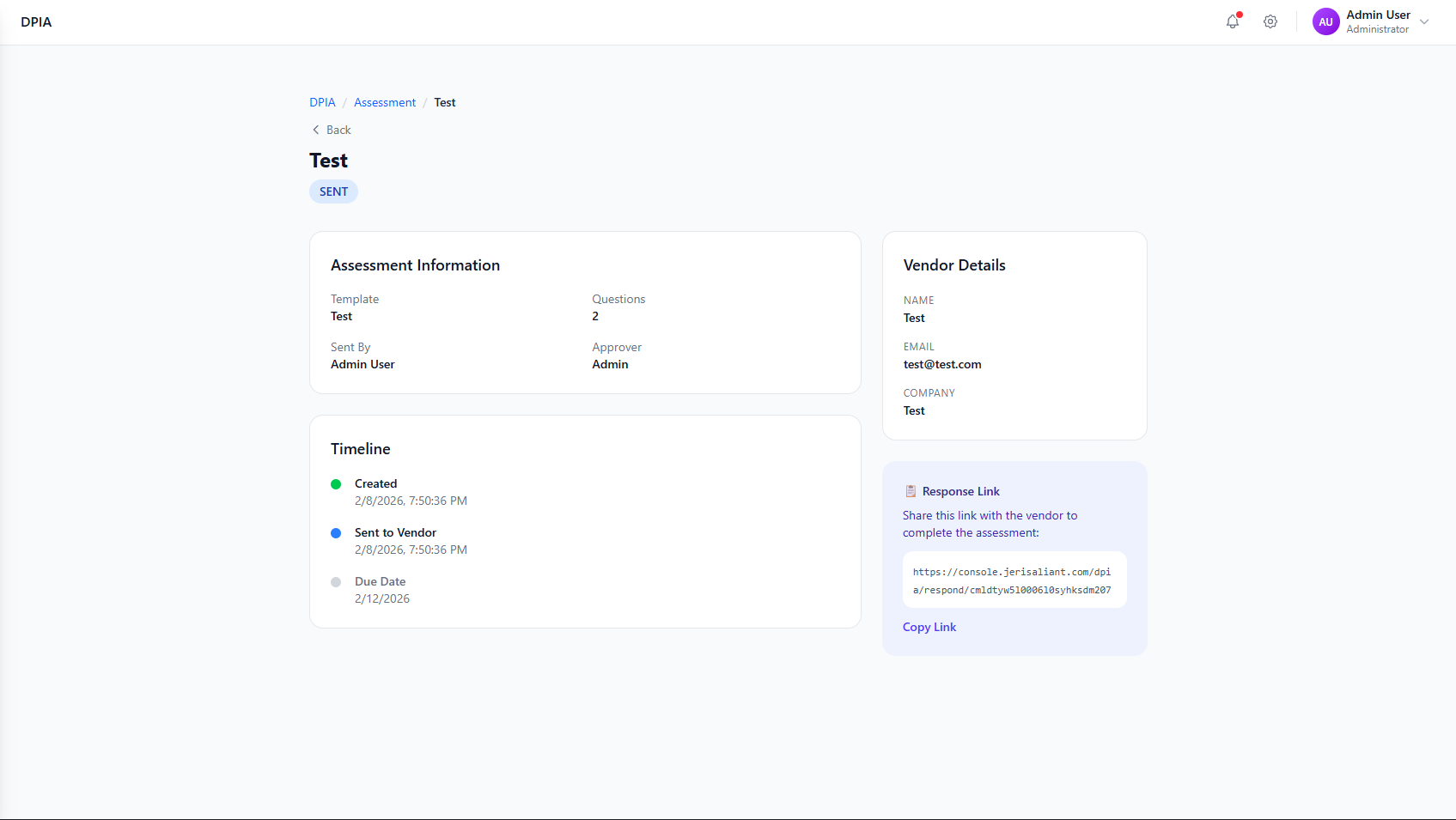 Learn how to create and send DPIA assessments to vendors and third parties.
