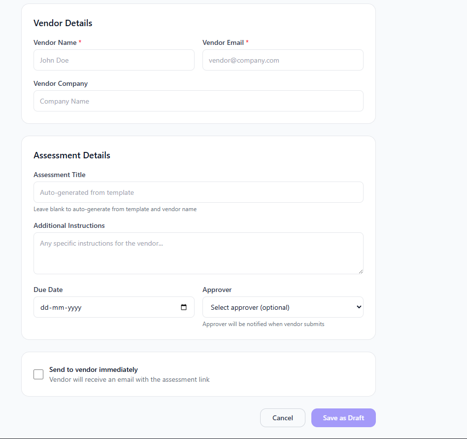 Check this option to email the assessment link to the vendor right away.